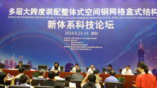9月24日至25日,由中國工程院土木、水利與建筑工程學部主辦,貴州大學、貴州省科技廳、貴州省住建廳等承辦的“多層大跨度裝配整體式空間鋼網(wǎng)格盒式結構新體系科技論壇”在貴陽開幕,論壇邀請中國工程院周豐峻院士、杜彥良院士、肖緒文院士、郭仁忠院士以及中國工程院土木、水利與建筑工程學部學術委員和來自國內(nèi)各知名高校、科研院所、設計院、鋼結構行業(yè)知名企業(yè)二百余人參加,經(jīng)過現(xiàn)場考察、主題報告、學術交流研討,形成對中國工程院士馬克儉“盒式結構新體系”的論證意見。意見認為:該體系以“產(chǎn)、學、研”結合方式進行科學技術成果的研發(fā)與轉化,是理論與實踐相結合的良好形式,是落實“實施創(chuàng)新驅(qū)動發(fā)展戰(zhàn)略”的有效舉措。該項目取得了良好的社會經(jīng)濟環(huán)境效益,有良好的推廣應用前景,經(jīng)典集團董事長苗樹文應邀參加“盒式結構新體系”研討,并與馬克儉、肖緒文等院士互動學習交流,并觀摩了中國南車集團貴陽新產(chǎn)業(yè)基地大自然工業(yè)園芯料生產(chǎn)廠房、貴州省博物館新館等“盒式結構新體系”應用示范單位。