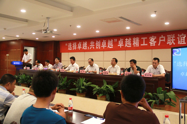 會(huì)議上,卓越精工總經(jīng)理劉海龍介紹了卓越精工一年來的發(fā)展歷程及基本情況,劉總在發(fā)言中談到,10個(gè)月300多天,卓越人保持了創(chuàng)業(yè)激情,沒日沒夜地干,經(jīng)歷了創(chuàng)業(yè)期的風(fēng)風(fēng)雨雨,承受了前所未有的壓力,戰(zhàn)勝了無數(shù)困難和挑戰(zhàn)才有了今天,我們忘不了政府領(lǐng)導(dǎo)在建廠時(shí)幫我們征地跑政策手續(xù)落實(shí)水電氣確保了工程進(jìn)度、忘不了中國有色金屬研究院的專家們給我們的技術(shù)支持幫我們克服了技術(shù)難關(guān),更忘不了我們前期在做市場推廣時(shí)遇到困難給予我們幫助和支持的你們特別是臨沂市場張學(xué)好總經(jīng)理做了我們公司的第一個(gè)代理經(jīng)銷商,正是你們大家給了我們卓越人信心和動(dòng)力!之后,劉海龍總經(jīng)理詳細(xì)介紹了公司經(jīng)營理念、人才、設(shè)備、產(chǎn)品、市場等方面的情況,給與會(huì)嘉賓以極大的鼓舞。