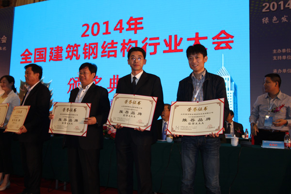開幕式上,中國建筑金屬協(xié)會對鋼結(jié)構(gòu)企業(yè)和個人進(jìn)行了頒獎,山東經(jīng)典建設(shè)工程有限公司被授予2014-2016年中國建筑鋼結(jié)構(gòu)行業(yè)推薦品牌信譽AAA企業(yè),經(jīng)典集團(tuán)副總經(jīng)理鄭建康上臺領(lǐng)取了證書。經(jīng)典集團(tuán)還參加了“四新”推廣交流會、技術(shù)論壇、鋼結(jié)構(gòu)配套產(chǎn)品展示活動等。