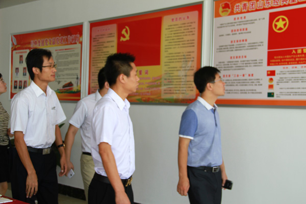 團支部書記周超陪同濟寧團市委書記鐘稱生等領導一同參觀團支部活動辦公室