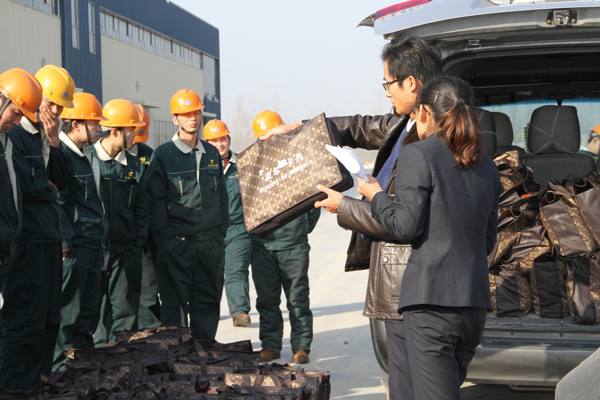 珍惜公司好形勢 鼓足干勁創(chuàng)目標(biāo)——公司為員工發(fā)放“皮爾卡丹”皮衣