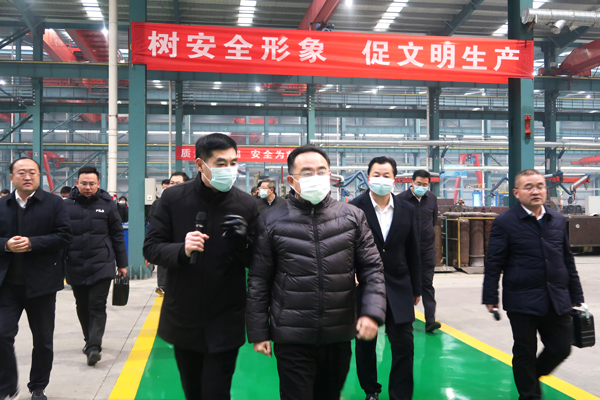 12月18日上午,濟寧市兗州區委書記王宏偉、區委副書記、區長王驍帶領2020年新舊動能轉換項目現場觀摩會領導觀摩指導中冶經典綠色建筑新材料研發制造基地項目情況。
