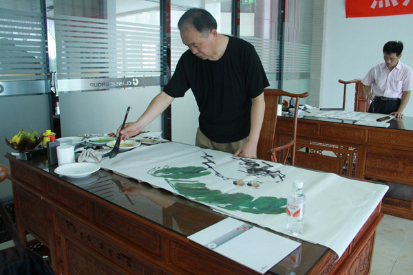 山東美術(shù)家協(xié)會會員,兗州市美術(shù)家,書法家,攝影家協(xié)會主席李寶亮;兗州市書法家協(xié)會副主席何愛民等10多位書畫家,齊聚一堂,揮毫潑墨,進(jìn)行了書畫表演和精心創(chuàng)作。書畫大師們共展出近70幅精品力作,作品藝術(shù)形式多樣、內(nèi)容取材各異,具有較高的藝術(shù)水平。 這次書畫聯(lián)誼筆會給集團(tuán)公司留下了不可多得書畫墨寶,將由經(jīng)典集團(tuán)公司永久珍藏。
