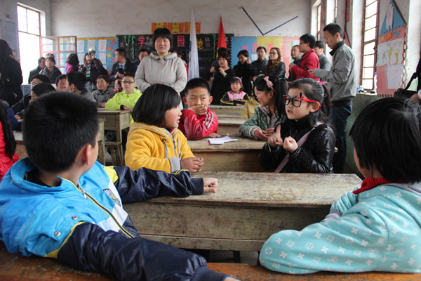 來(lái)自濟(jì)寧霍家街等小學(xué)的小志愿者們走進(jìn)泗水縣泗張青界小學(xué)