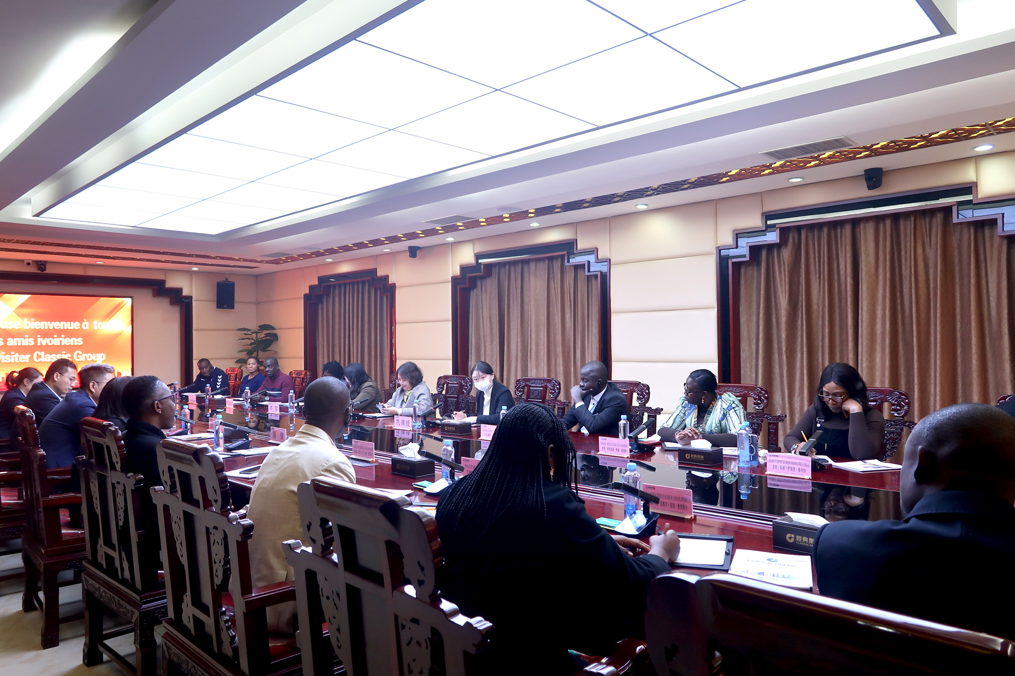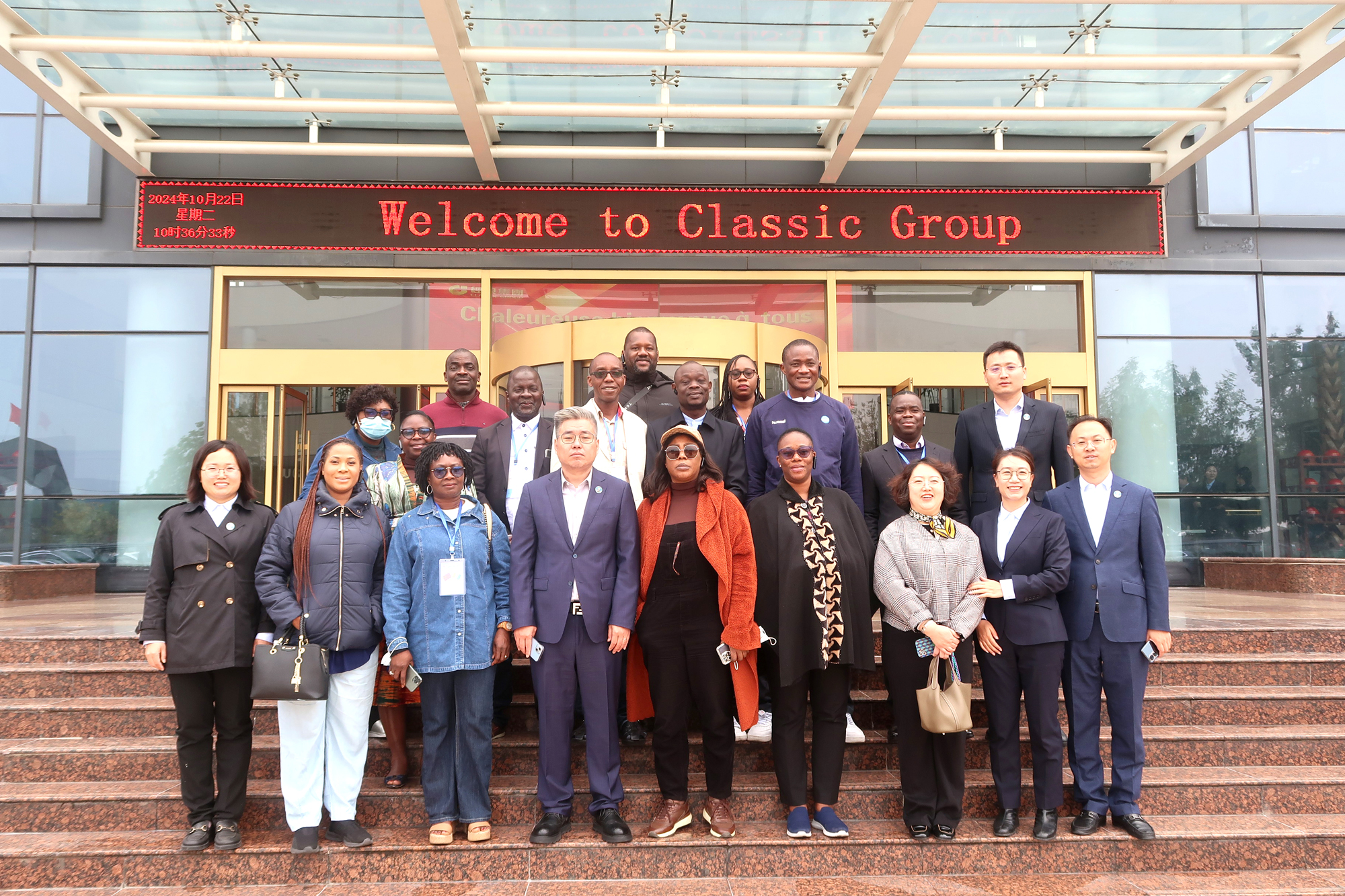 10月22日上午,商務(wù)部援外培訓(xùn)項(xiàng)目“科特迪瓦中高級(jí)外交官研修班”一行20余人,在山東外貿(mào)職業(yè)學(xué)院國際官員研修學(xué)院院長王保紅帶隊(duì)下,蒞臨經(jīng)典集團(tuán)就工業(yè)發(fā)展經(jīng)驗(yàn)、中外經(jīng)貿(mào)合作等方面的經(jīng)驗(yàn)做法進(jìn)行參觀交流。經(jīng)典集團(tuán)副總經(jīng)理兼生產(chǎn)總監(jiān)張琦、副總經(jīng)理侯士輝等陪同。